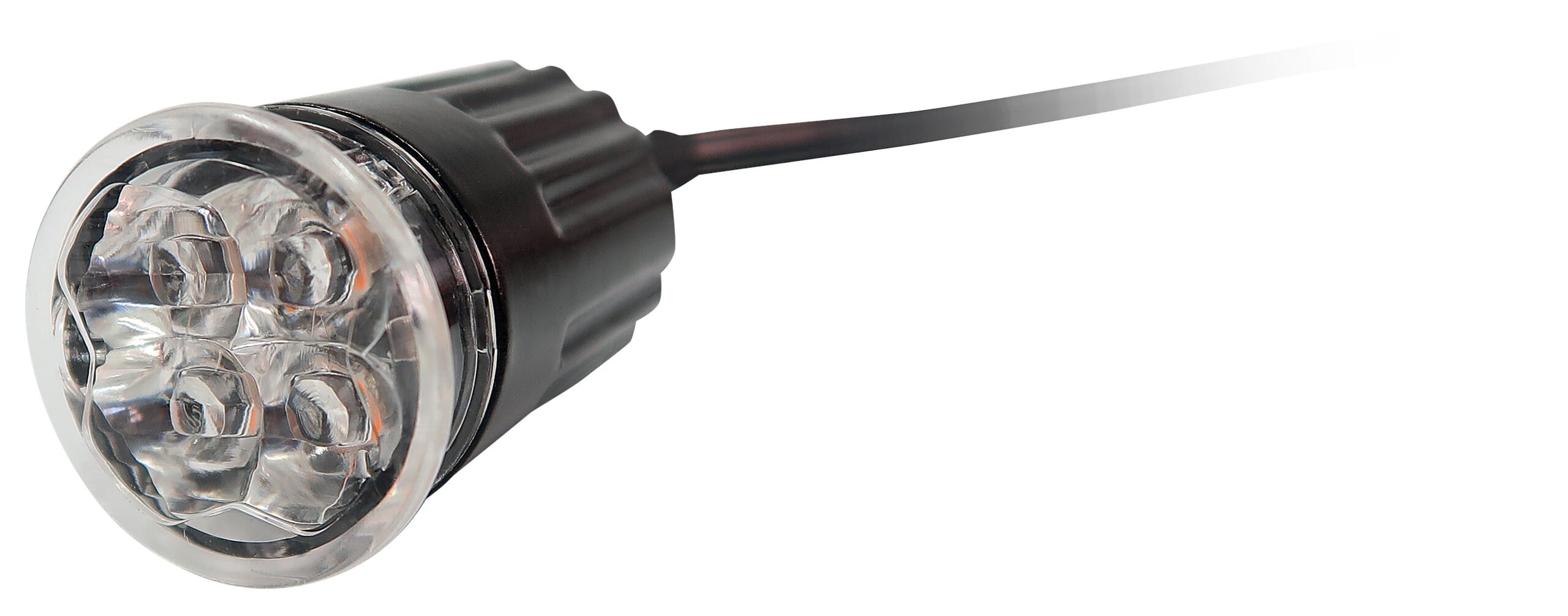 Strobelys med fire LED-dioder. For innfelt montering, hus i aluminium og linse i polykarbonat. Klart glass. Flere enheter kan synkroniseres og blinke samtidig eller vekselvis.