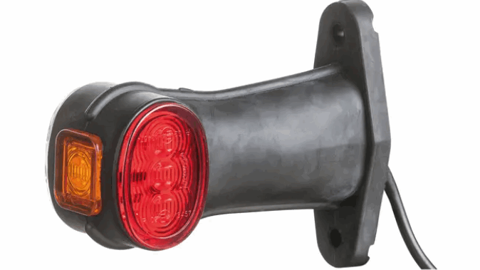 Lucidity markeringslys med kort gummiarm, 3 led rød/hvit med 1 orange led til siden. leveres med 2,5m kabel. 12/24V Total lenge 127 mm, avstand festehull: 78mm. Dimensjoner på glass: 61mm x 38 mm