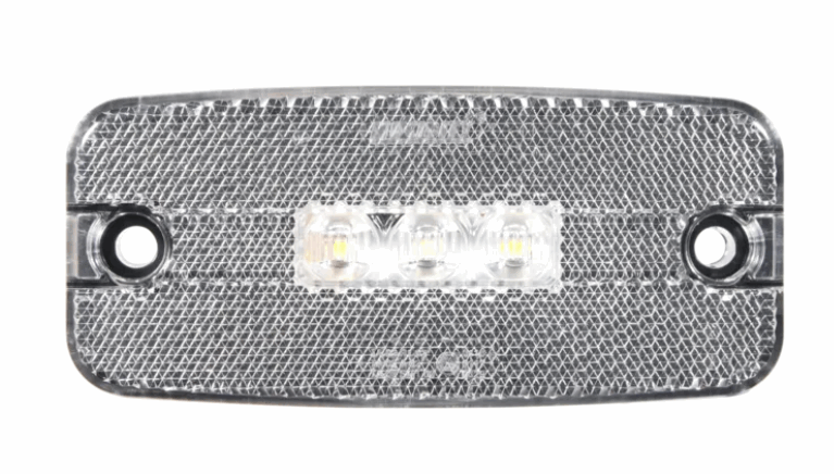 Markeringslys LED Lucidity, klar med 3 dioder, 12/24V. Leveres meded 2,5m kabel. Dim: 111mm x 50mm dybde 23mm., avstand festehull 90mm.