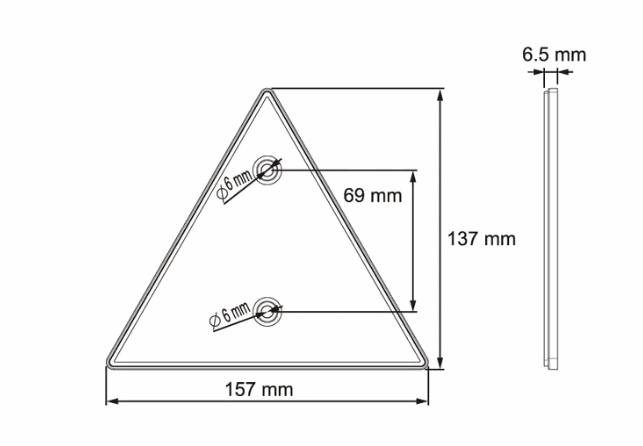 Refleks Lucidity trekant for tilhenger. Plast, sort bakside. Dim: 157mmx137mm, avstand mellom festehull 69mm. Tykkelse 6,5mm.