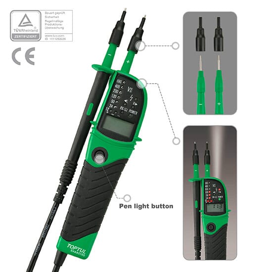 AC- og DC-spenningstester opp til 690V med LED- og LCD-skjerm