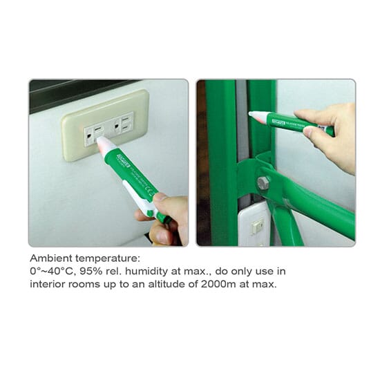 Egnet for testing av vekselspenning i uttak, strømførende ledninger, kabler, ledninger, effektbrytere, lysarmaturer, brytere og etc.
