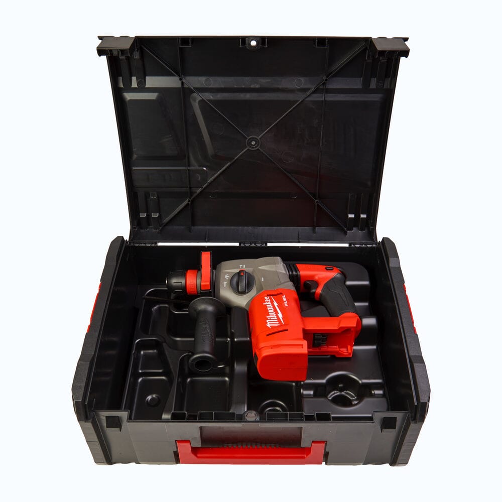 M18 Heavy Duty FUEL SDS-plus kombihammer med børsteløs POWERSTATE motor for opptil 2 ganger lengre levetid og opp til 25% lenger driftstid. 4,0 J slagenergi. Borkapasitet i betong 28 mm. 5000 slag/min. Lavt vibrasjonsnivå, kun 8,6m/sek². 4-modus for maksimal allsidighet. FIXTEC system - nøkkelfri chuck. Batteriindikator. Kompatibel med M18-28 CPDEX støvoppsamler. Vekt med batteri 4,3 kg. Leveres i HD Box med FIXTEC 13 mm metallchuck og sidehåndtak med dybdeanlegg i metall (uten batteri og lader).