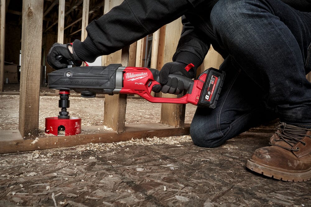 M18 FUEL SUPER HAWG® 2-hastighets høyre vinkelbor-/skrumaskin. Strømindiaktor og LED lys. POWERSTATE børsteløs motor gir konstant kraft til 152 mm hull. REDLINK PLUS intelligent system, leverer avansert digital overspennsvern. Opp til 100 hull med 65 mm bor i tre. Metallkropp og 13mm nøkkelchuck for høy holdbarhet. En del av Milwaukee® M18 plattformen. Lav hastighet 0-500 rpm / høy hastighet 0-1550 rpm. Vekt med batteri 6,4kg. Leveres uten batteri og lader.