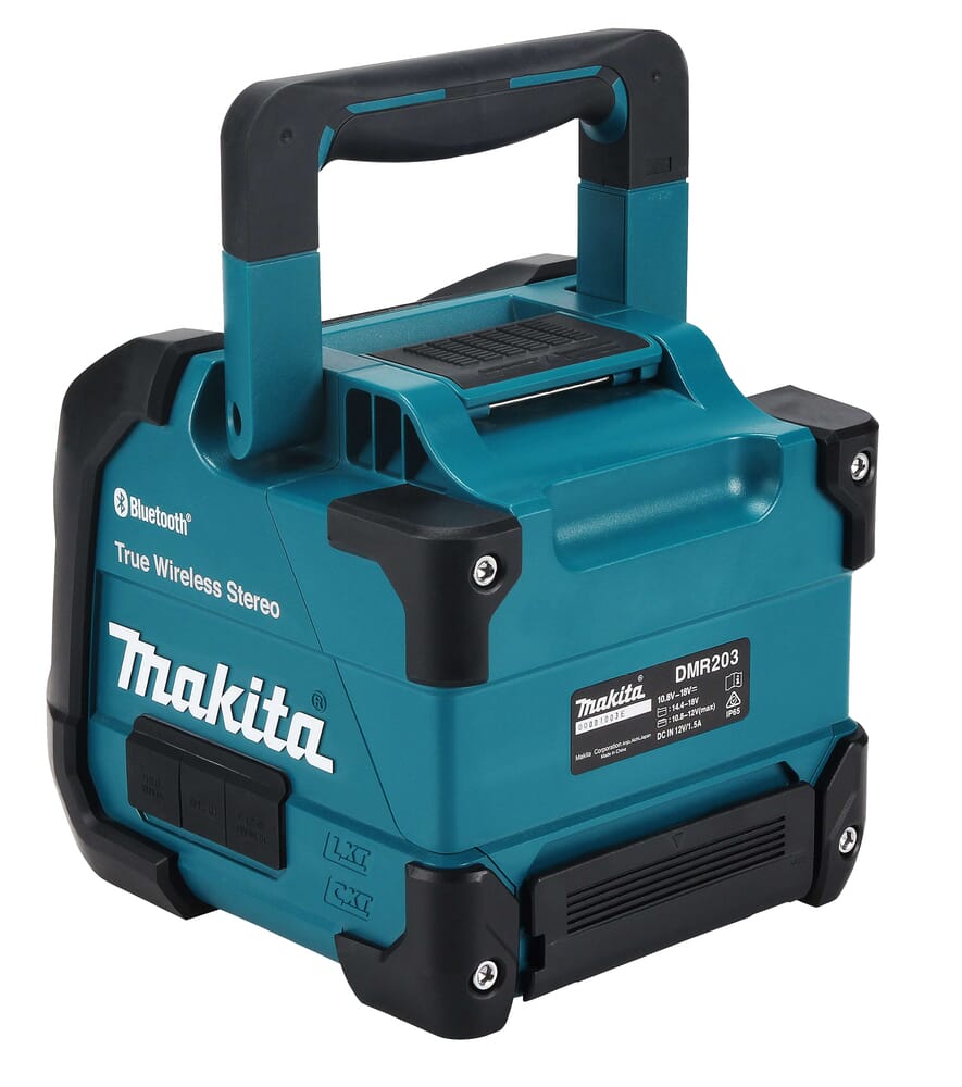 Robust og sprutsikker sort byggeplasshøyttaler. Bluetooth, AUX-IN, USB.