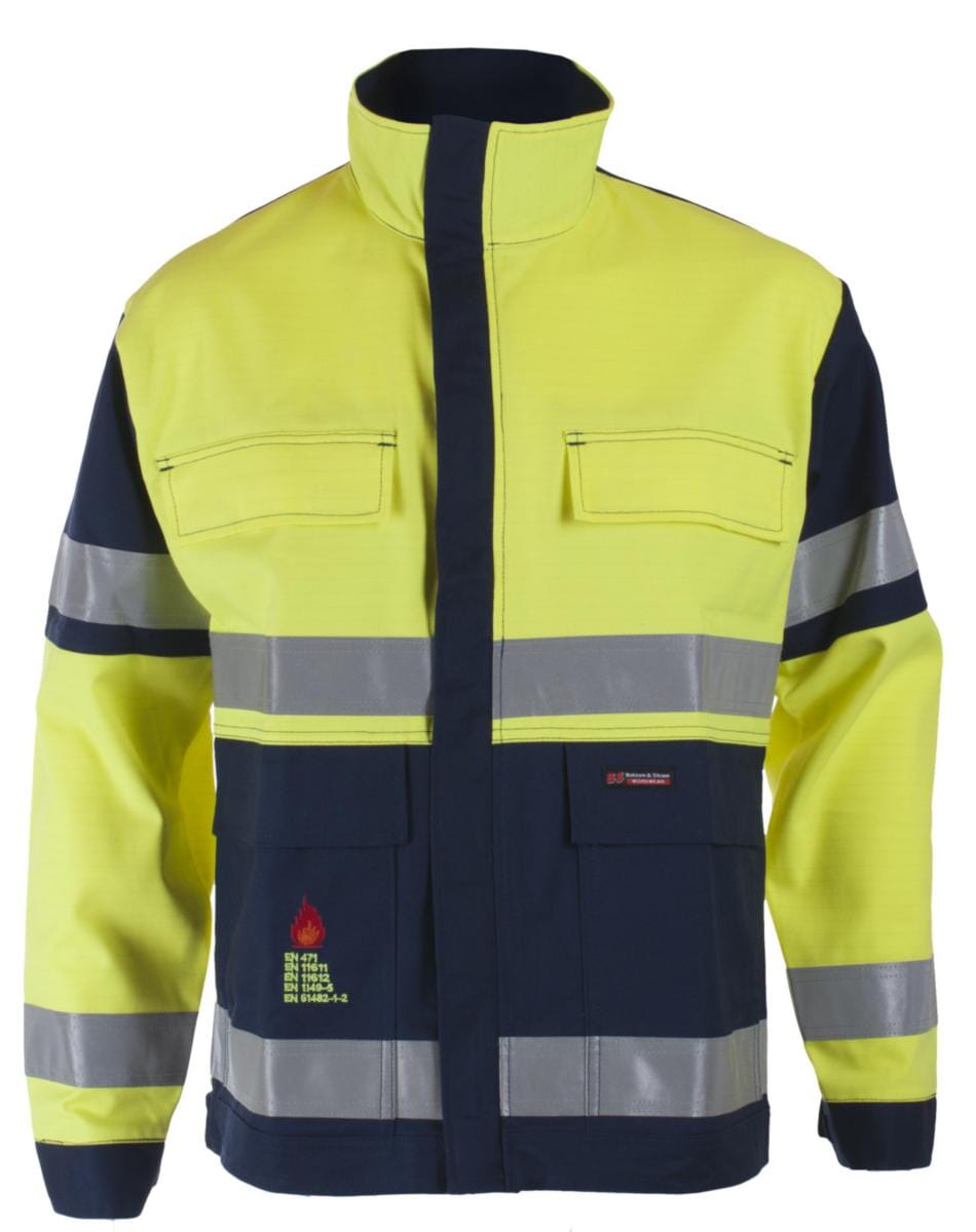 Standard: EN ISO 20471:2013 kl. 2, EN 1149-5:2018, EN ISO 11612:2015, A1+A2 B1 C1 F1, IEC 61482-2:2018, APC 1, EN ISO 11611:2015, kl. 1 A1+A2.