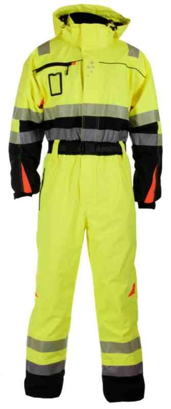 Vinterkjeledress i funksjonelt design. Pustende, vind- og vanntett. Tapede sømmer. Vannsøyle 13 000 mm, pustende 4000 g/m²/24t. Høy krave med børstet fleece innside. To-veis YKK® glidelås i front som går helt opp i kraven, klaff med trykknapper. Hjelmtilpasset avtakbar vattert hette med skjerm, fult justerbar med to elastiske strammesnorer. Vattert fôr. Kartlomme med glidelås på venstre side under klaff. Brystlomme på høyre side med horisontal vanntett glidelås. Utvendig ID-kortlomme på høyre bryst. To innvendige brystlommer, begge med glidelås. To forlommer, begge med vanntett vertikal glidelås. Regulering av ermeavslutning med trykknapper og strikk. Pulsvarmer i ermeavslutning. Strikk og brede beltehemper i livet. Avtakbart belte med plastpenne. Tommestokklomme med drenering. Lang to-veis YKK® glidelås i ben med klaff med borrelås. Snølås med borrelås, trykknapp og strikk. Justering av benavslutning med trykknapp. 50 mm 3M Scotchlite™ segmentert transferrefleks på ermer, ben, skuldre, mage og bryst.