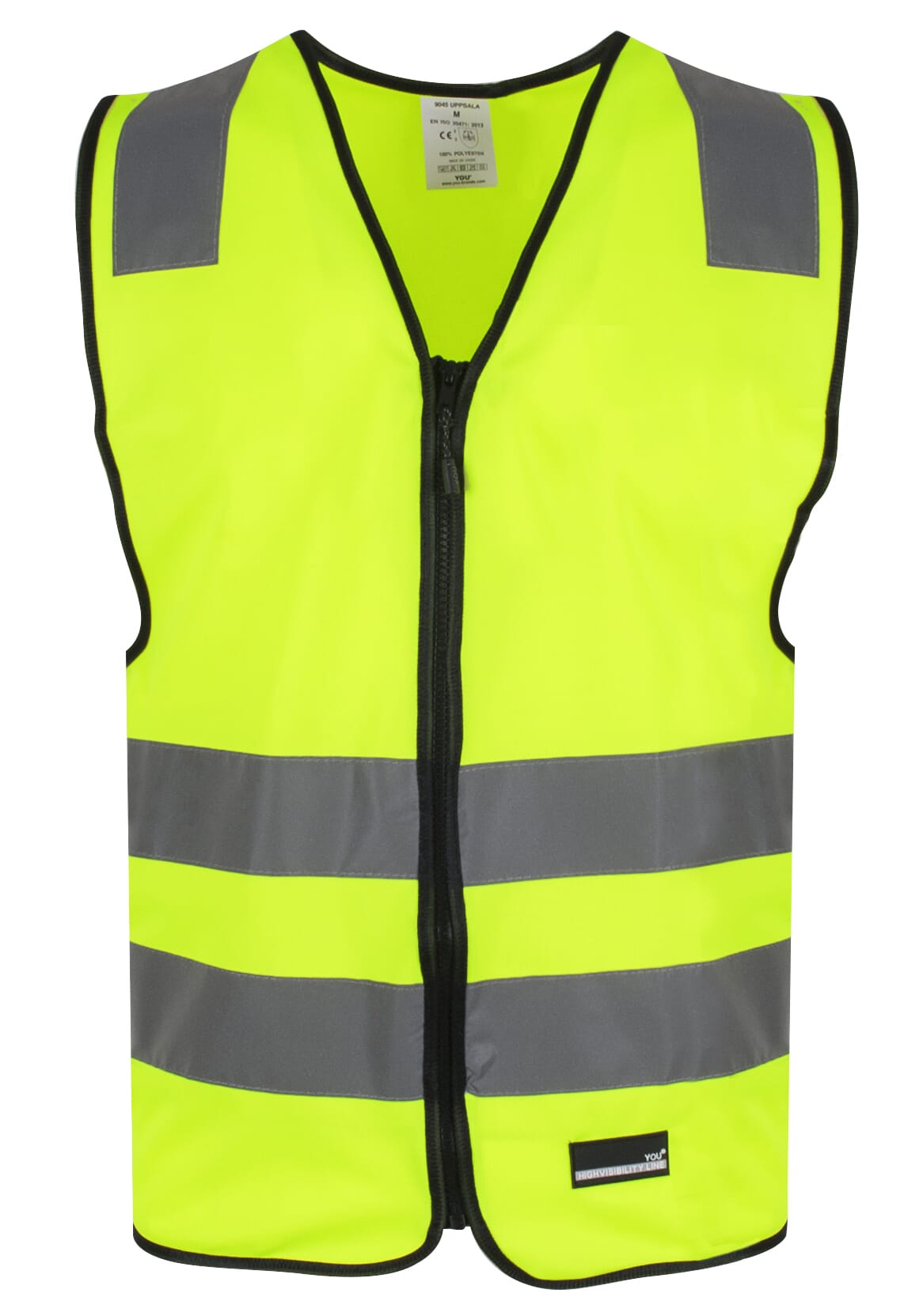 Unisex refleksvest til arbeid og fritidsbruk. Påsydde refleksstriper sørger for at du er godt synlig i omgivelsene. Glidelås i front. Safety oppbevaringspose medfølger. CE- merket. EN 20471, klasse 2. 130 gr/m². 100% polyester.