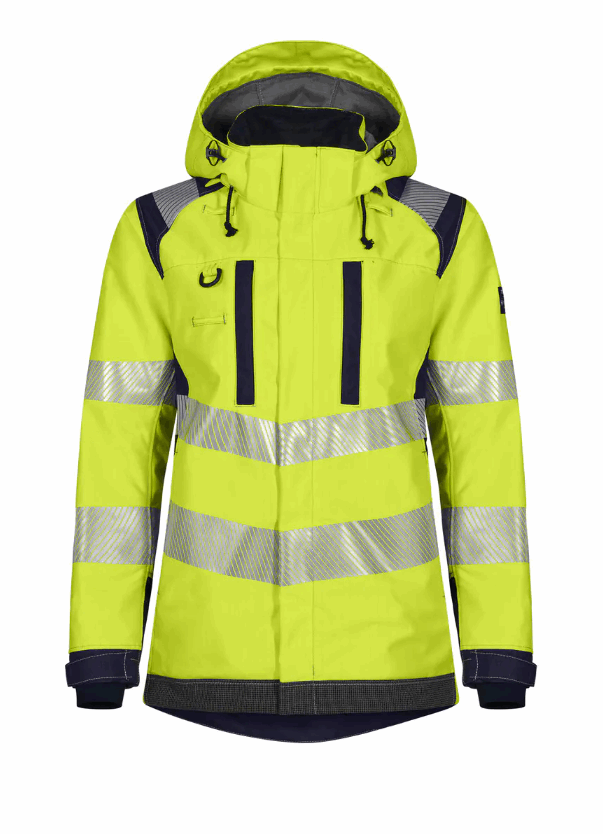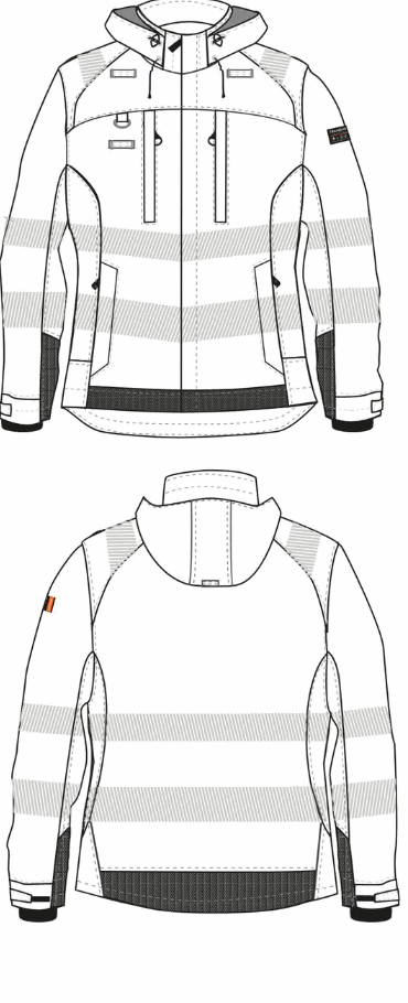 Jakken er egonomisk utformet for arbeid med armene over hodet. Skjult glidelås og dobbel stormklaff med trykknapper i front. Avtakbar og justerbar hette. Hemper for kommunikasjonsutstyr. Brystlommer med glidelås. To innerlommer med glidelås der den ene er for dokument/lesebrett og med integrert telefonlomme. Sidelommer med glidelås. Justerbar mansjett og pulsvarmer. Snøring nederst. HTFR Dobby forsterkning nederst på rygg og på armer. Transfer refleks for økt komfort. Kan utstyres med 9129 pilefor. *Størrelse S er sertifisert sammen med Tranemo sine bukser og selebukser sertifisert i EN ISO 20471 CL.2 slik at de sammen oppnår EN ISO 20471 CL.3. Størrelse M-XXL er sertifisert sammen med Tranemo sine bukser og selebukser sertifisert i EN ISO 20471 CL.1 eller CL.2 slik at de sammen oppnår EN ISO 20471 CL.3. **Hetten skal enten brukes eller fjernes ved sveisearbeid eller arbeid med kjemikalier.