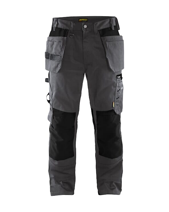 DETALJER: Gylf med glidelås i plast. Avtakbar ID-kortlomme. Metallknapper. To hemper i siden med knapp til hammerholder, en hemp med D-ring på forsiden. Vid hempe bak.. Innerbenssøm med 3-nålssøm. FORSTERKNING: Cordura®-stretch forsterket knelommer. FUNKSJONALITET: Stretchpaneler bak på ryggen, på kneet og på bak kneet. HOVEDEGENSKAPER: EN 14004. Betongarbeider. LOMMER: Baklommer med belg, forsterket. Benlomme med belg, pennlomme, Flex-telefonlomme og to store lommer hvor den ene er med glidelås, avtakbar ID-lomme.. Innstikkslommer. Knebeskyttelseslommer. Spikerlommer med verktøyholdere som kan puttes ned i frontlommer. Forsterket tommestokklomme med knivholder og pennelomme. SERTIFISERING: EN 14404:2004+A1:2010 sammen med knepute 4027, 4057, 4058 og 4032. STOFF: Men. Håndverk. Grå. Knebeskyttelseslommer. VASKERÅD: Tørketrommel ? lav