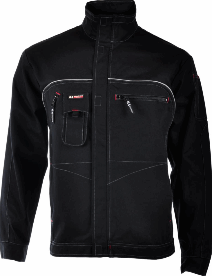 Jakke med fold i rygg, stikklommer, brystlommer, id-kortlomme og mobillomme. Glidelås med klaff i front. Trykknapper for regulering rundt håndledd og liv. Refleks i bise.