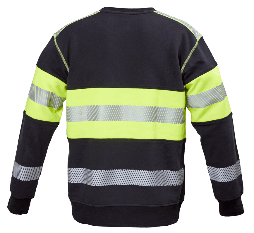Tykk og god Sweatshirt – eller College-genser som det også kalles, som varmer på hustrige dager. Sertifisert som klasse 1 i h.t. EN ISO 20471 normen. Det solide bomullsstoffet gir høy komfort-faktor og gir god isolasjon når det trengs, samtidig som det ventilerer godt. Rikelig med reflekterende transfer-detaljer.