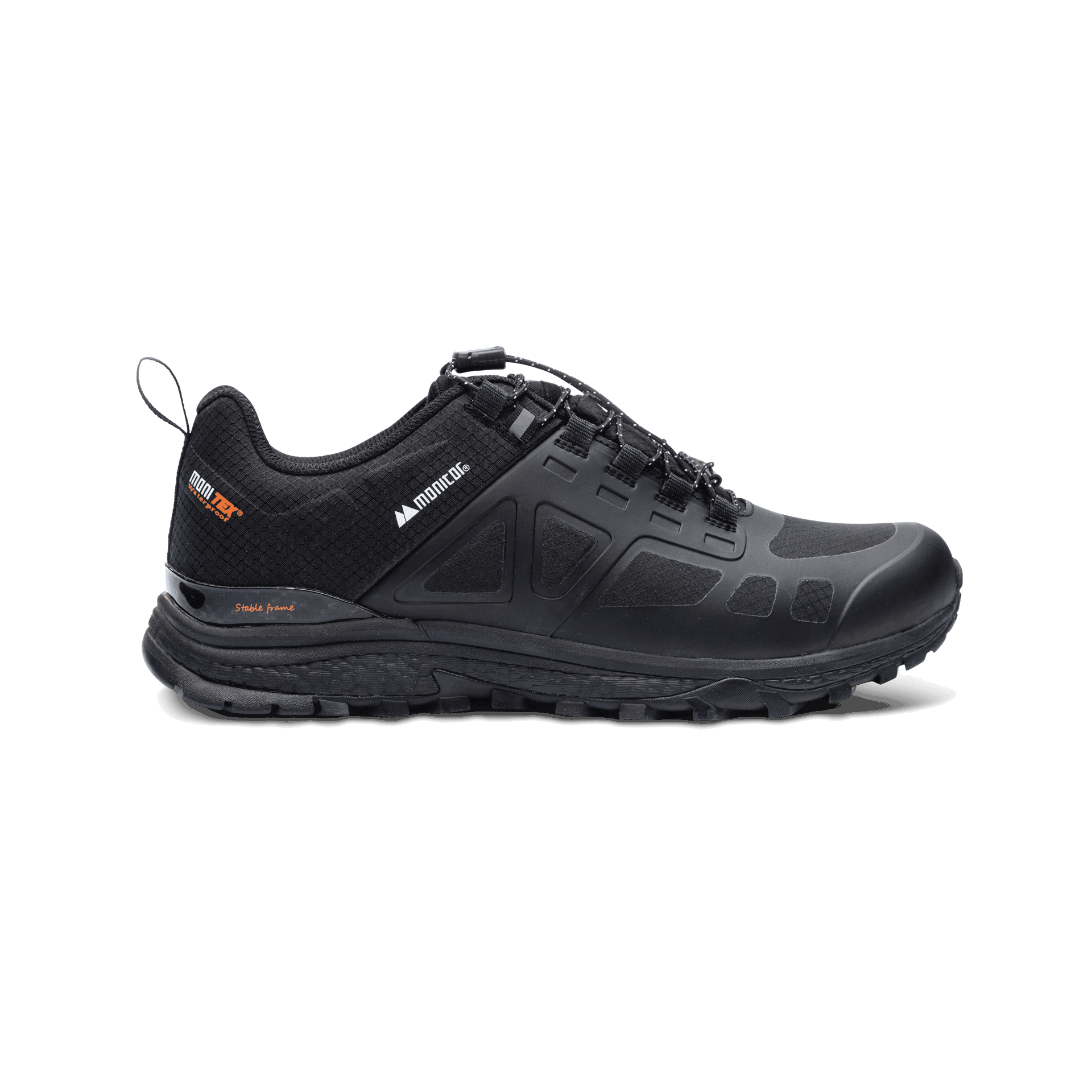 Cyclone er en lett, komfortabel og vanntett sko designet for både fritid, sport og friluftsliv, samt for arbeid der vernesko ikke er nødvendig. Overdelen er laget av slitesterkt ripstop-tekstil og har beskyttende TPU-paneler for ekstra slitestyrke. Den smarte hurtigsnøringen kan enkelt justeres og skjules i en lomme på pløsen for et renere utseende. Skoen er utstyrt med en tykk, dempende EVA-mellomsåle og en slitesterk, sklisikker yttersåle i gummi. For økt stabilitet og bedre hælstøtte er en "Stable frame" integrert i hælpartiet, mens innersålen i minneskum gir myk og langvarig demping.