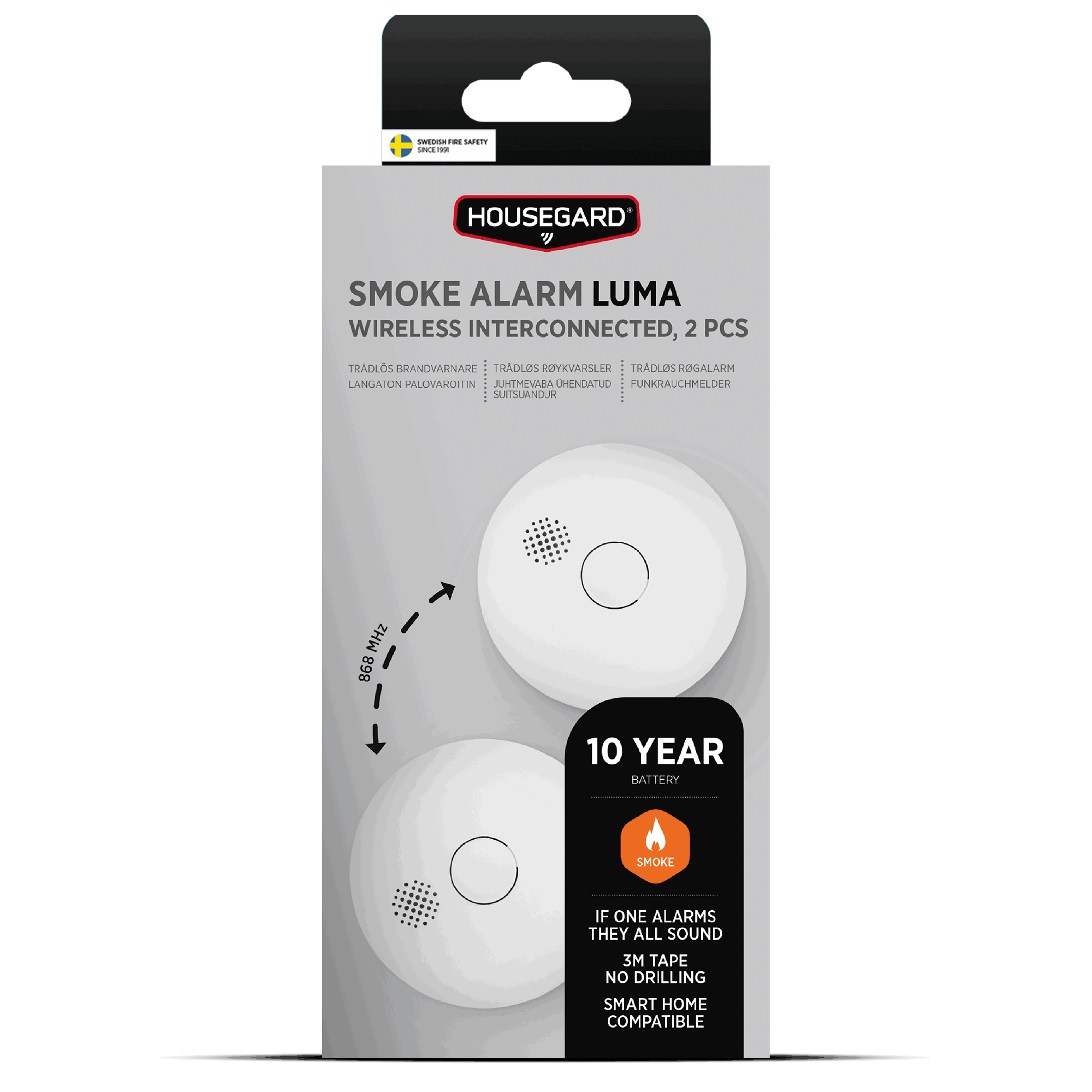 Luma er er seriekoblet røykvarsler som kan kobles sammen opptil 40 enheter. Varsler én, varsler alle – på den måten blir du varslet uansett hvor du måtte befinne deg i hjemmet når brannen starter.