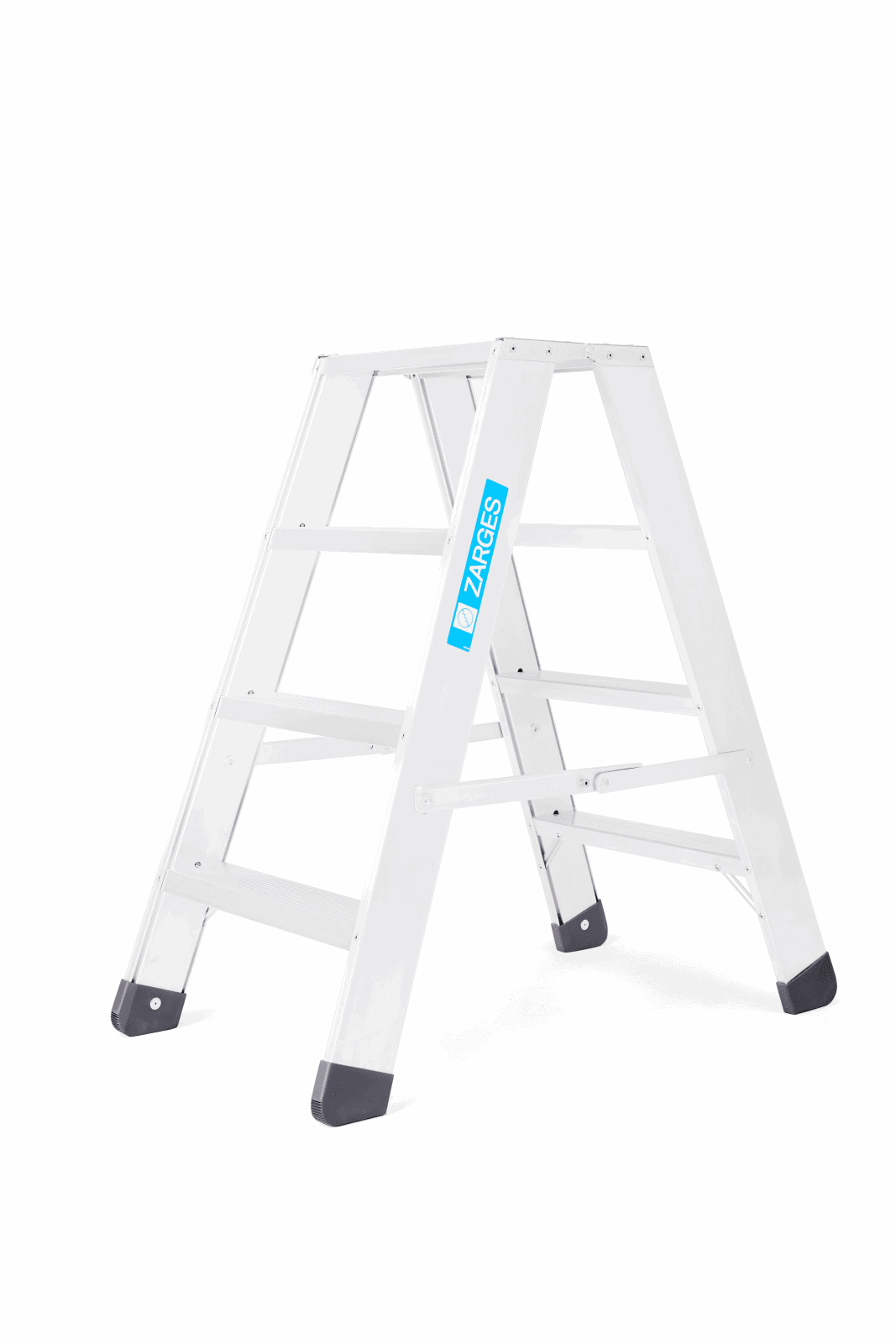 Zarges Proffbukk Økoproff er en lett og ekstra solid proffbukk i aluminium med 85 mm dype sklisikre trinn. Bukken er svært robust og er utstyrt med avstiverstag mellom stigedelene