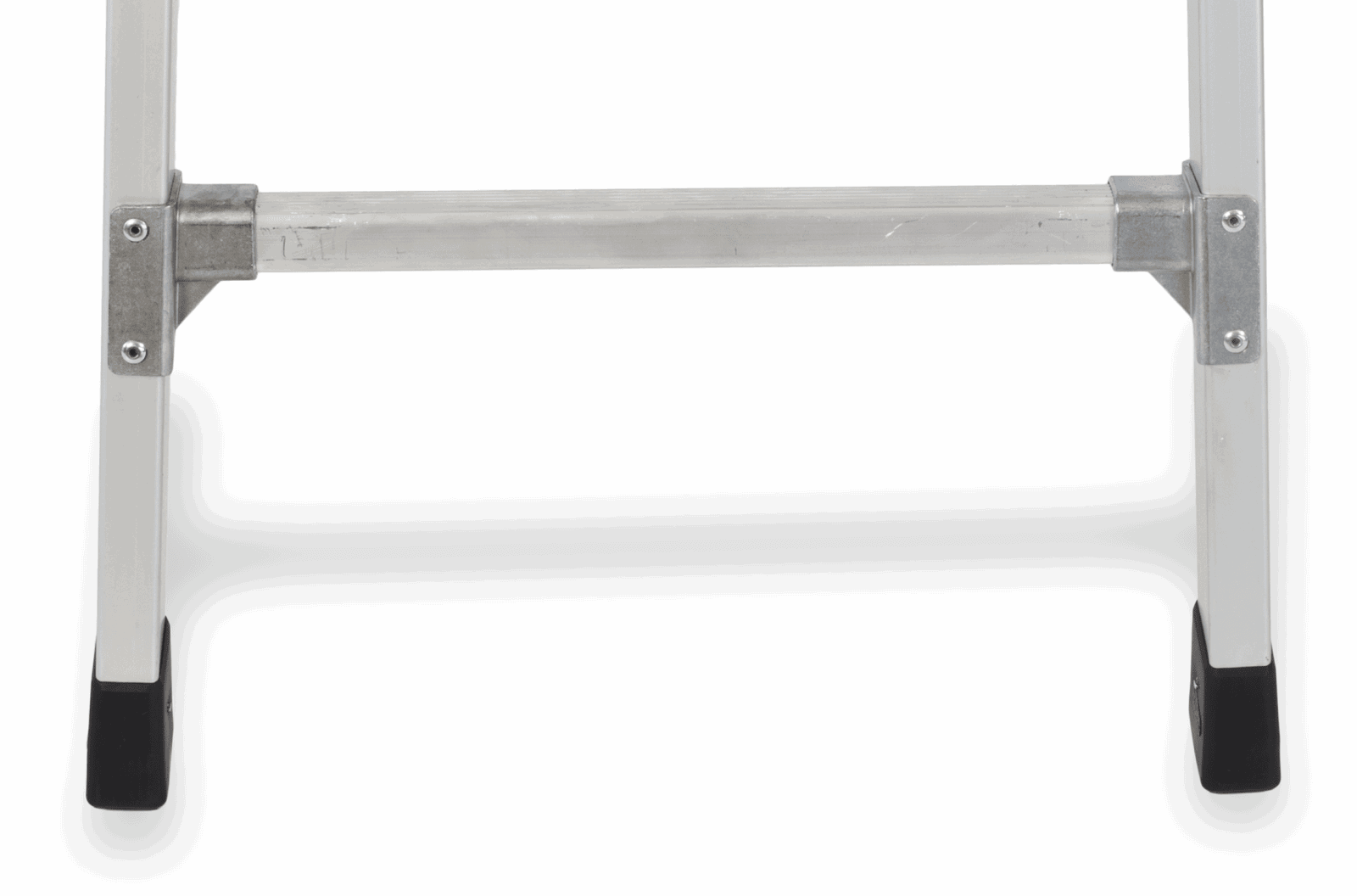Trappestigen er produsert i svertefri aluminium slik at du ikke får sverte på hender, og er utstyrt med verktøybrett og plattform i aluminium, og avstiversatg mellom stigedelene for ekstra sikkerhet, samt et ekstra hjelpetrinn på baksiden.