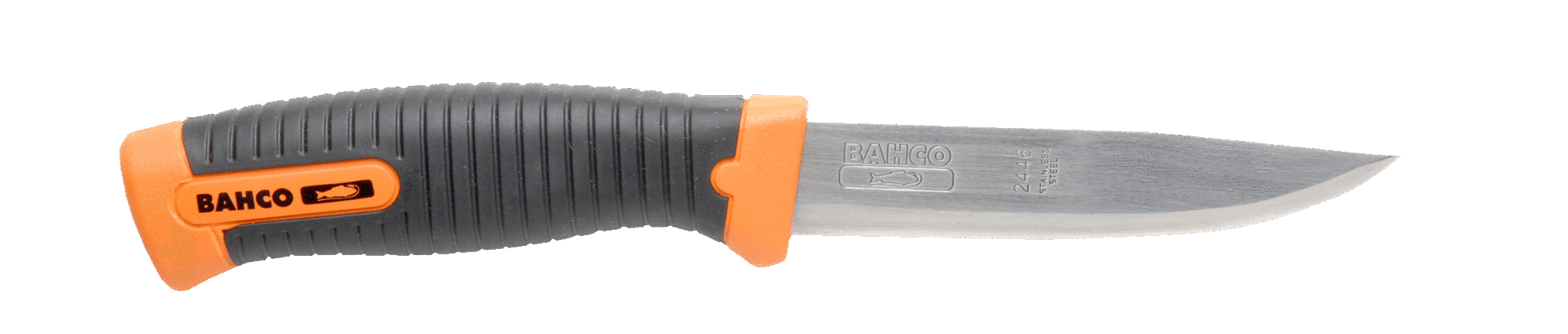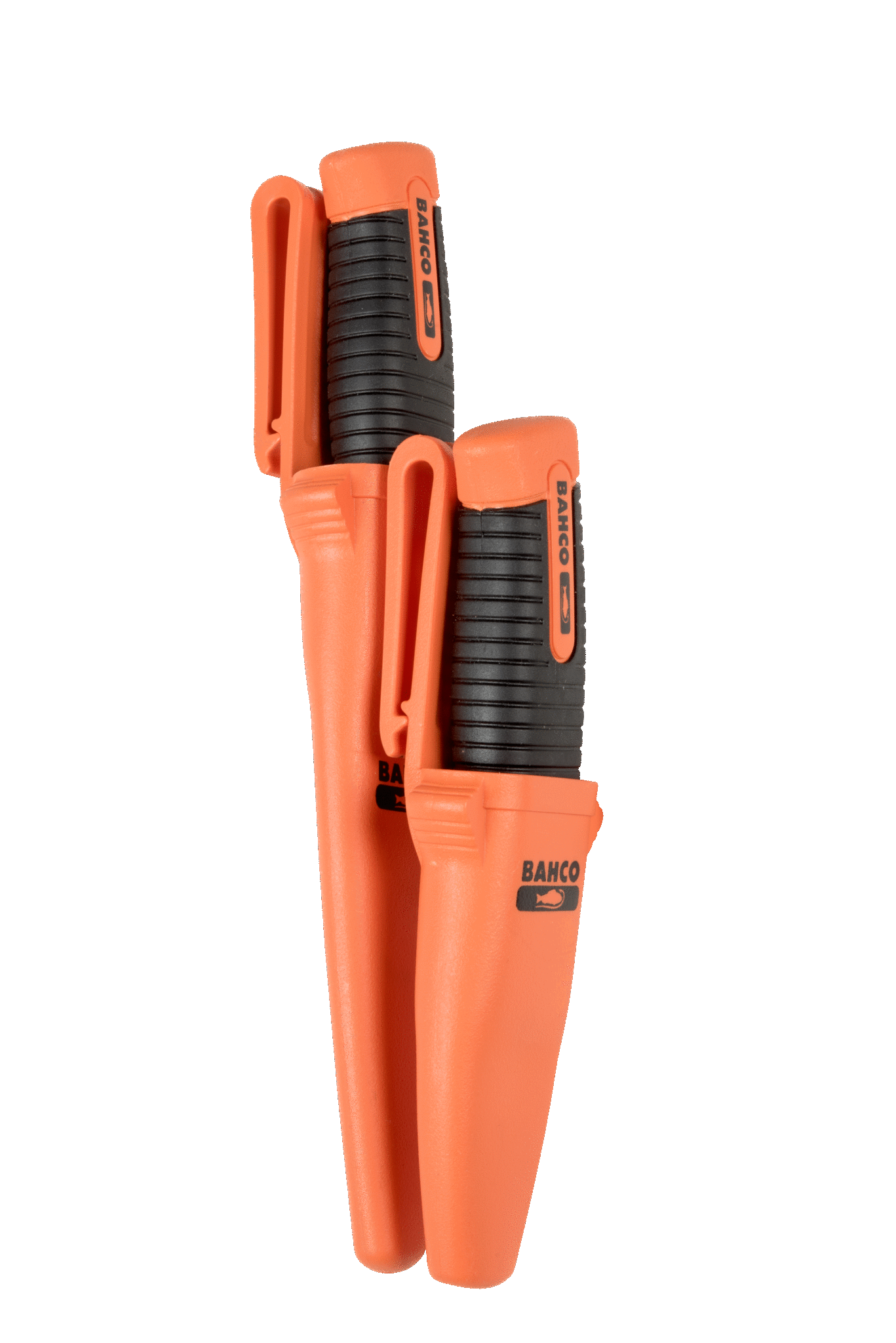 Allroundkniv med to-komponents håndtak og slire med knapp for doble kniver