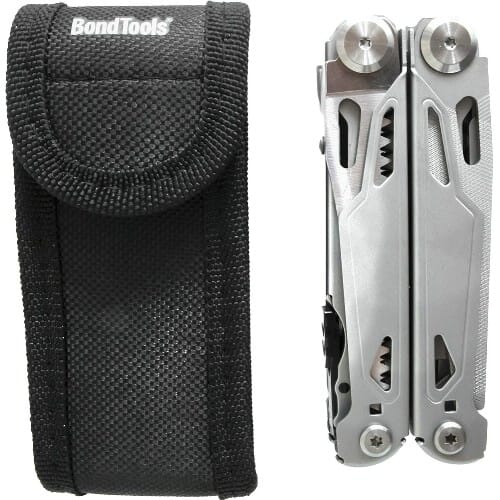 Multiverktøy laget av rustfritt stål. En lommestørrelse verktøykasse med sine 16 funksjoner, inkludert spiss tang, kniv, saks, flaskeåpner og kabelstripper – du er alltid klar, enten du er hjemme eller ute i naturen. Lett å bære med seg og lett å bruke. Holdbar, kompakt og full av praktiske verktøy. Kommer med hylster.