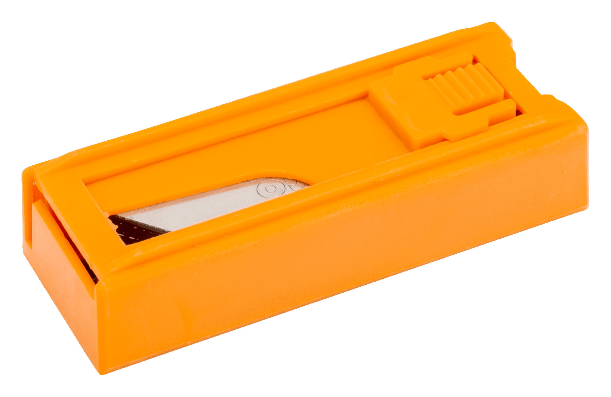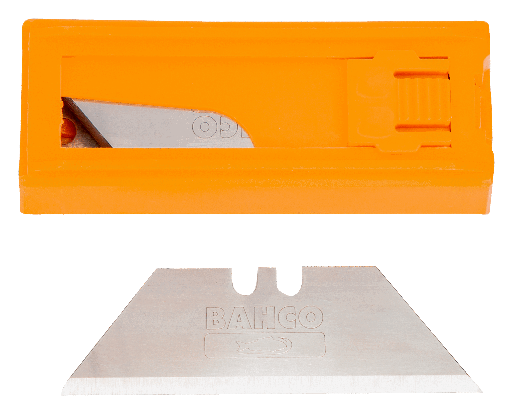 10 reserveblader sikkert oppbevart i en hendig beholder